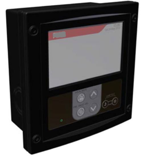 Control/Repeater panel for cargo. It has a 4.3" graphical colour display used to manage and supervise the system. Mounts on any flat surface independent from a fire alarm cabinet.