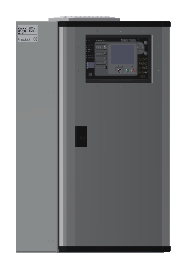 Large cabinet with a Control M 4.3 panel and two 380 mm DIN rails for CCP modules. Inner door for documents. Swedish standard fire key lock (SS3654). CPR approved.