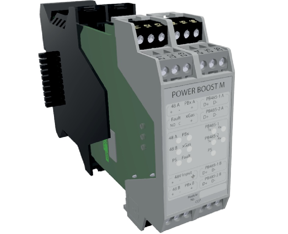 Gas alarm power module for distributing power and supervising connections in the system. Possible to supply power that is secured against interruption and short circuit.