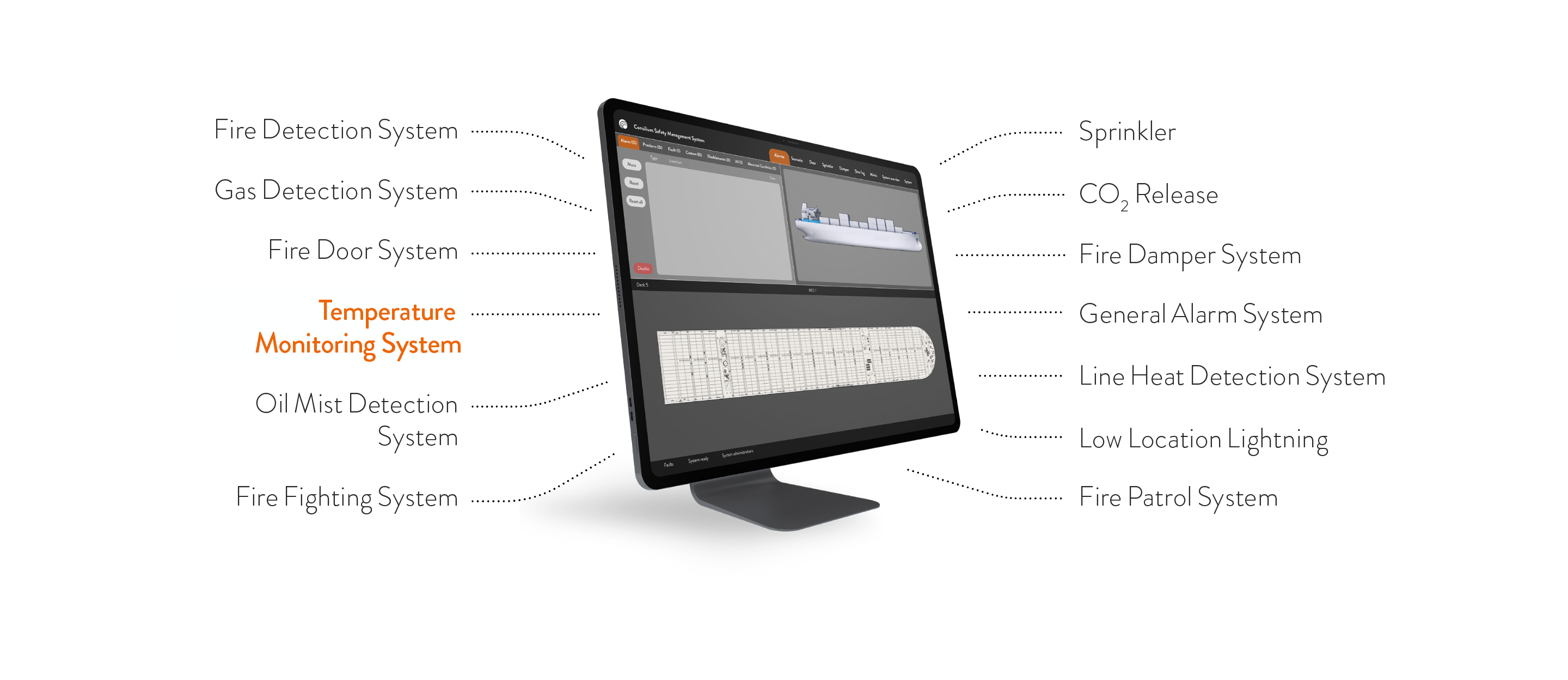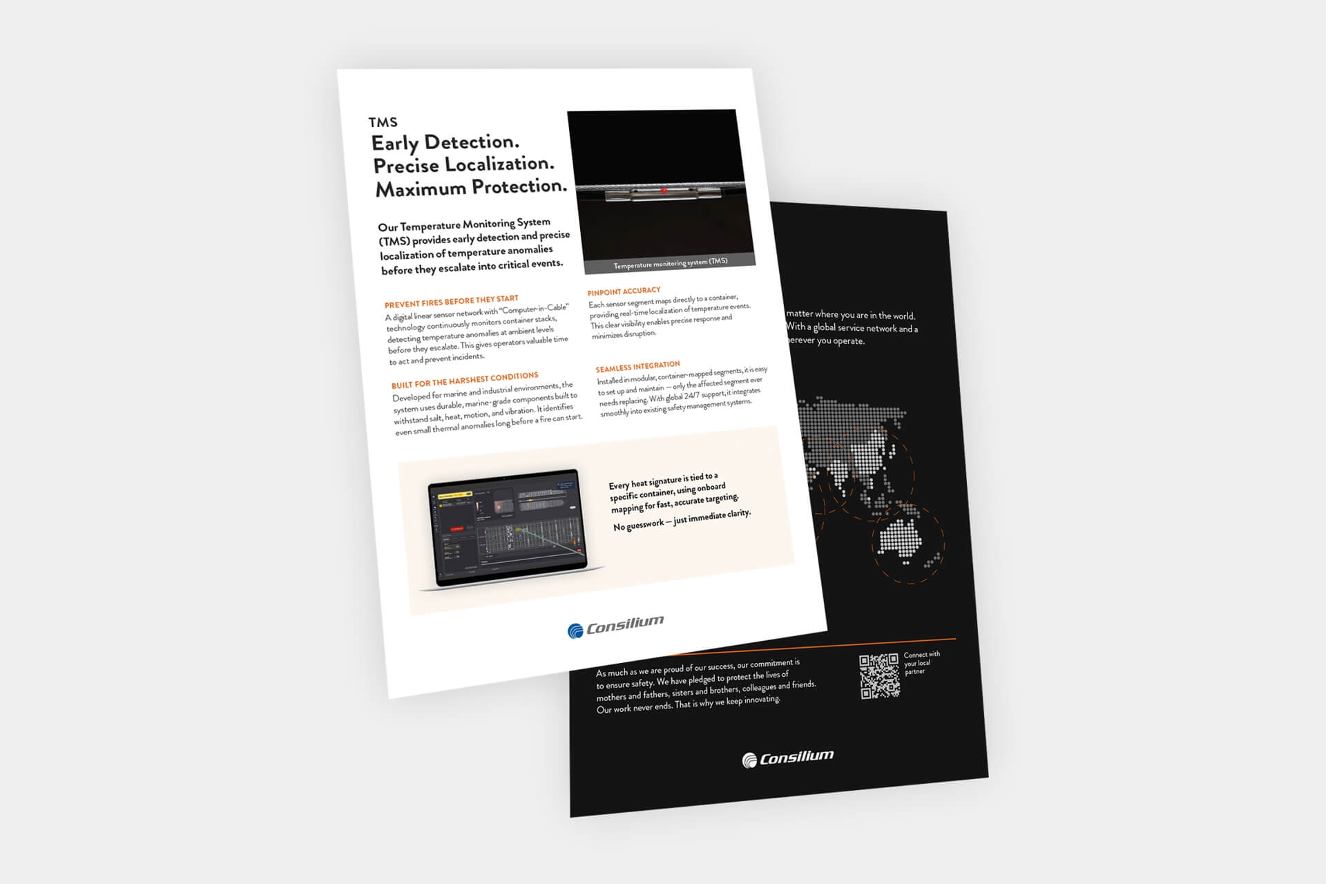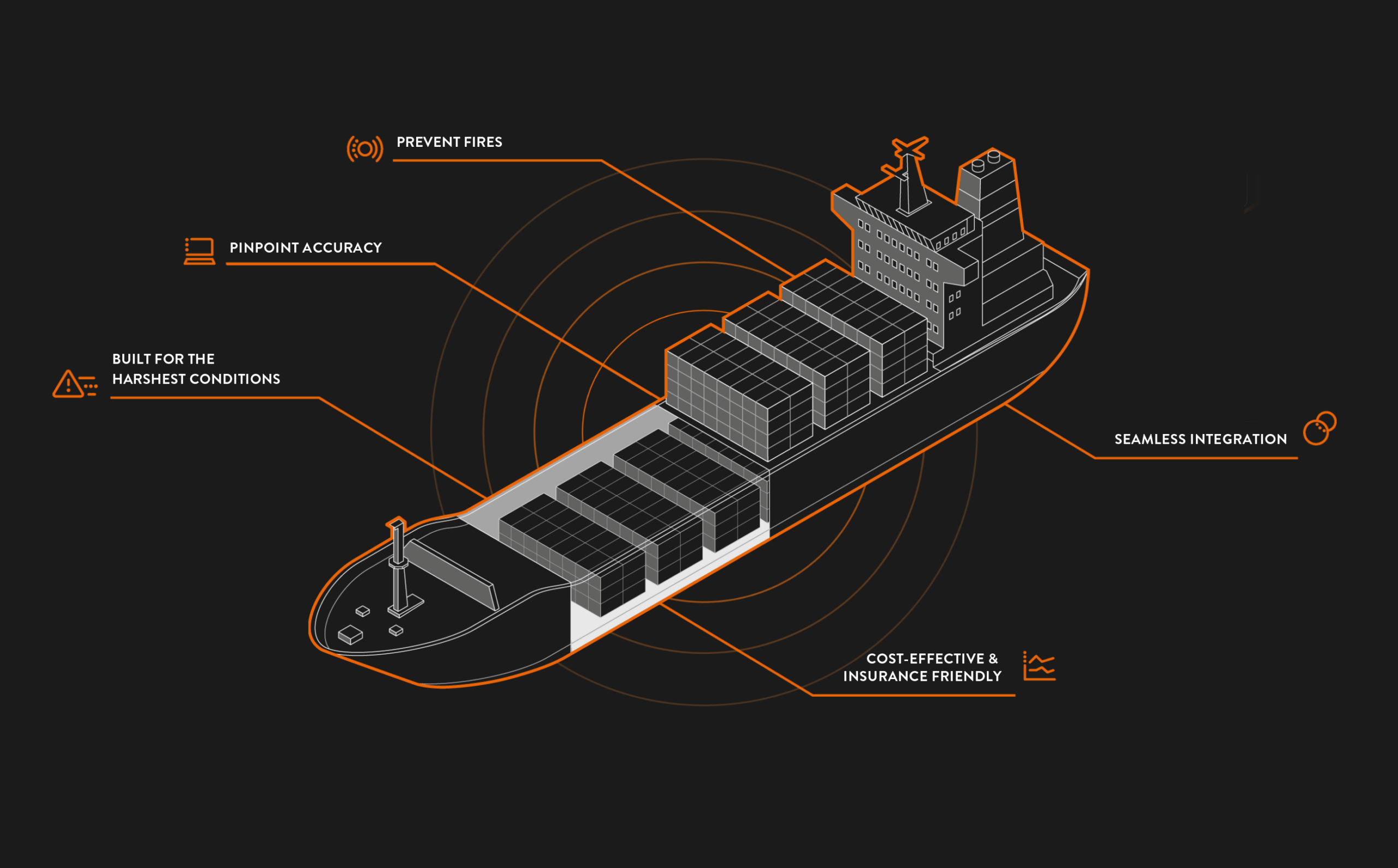 Developed for marine applications and large-scale industrial infrastructure, the system is engineered for harsh environments like salt, heat, motion, and vibration. It reliably detects minimal thermal anomalies – even at ambient temperatures, before a fire starts.